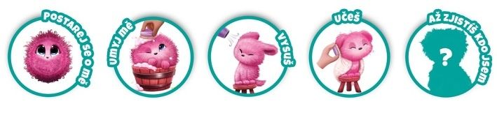 Umyj ošklivý plyšový míček, vysuš ho, učeš ho a zjistíš, zda se v něm schovával pejsek, kočička nebo králíček. Sada obsahuje také kartáč, obojek s přívěskem, sponkou a osvědčením o adopci, plyš