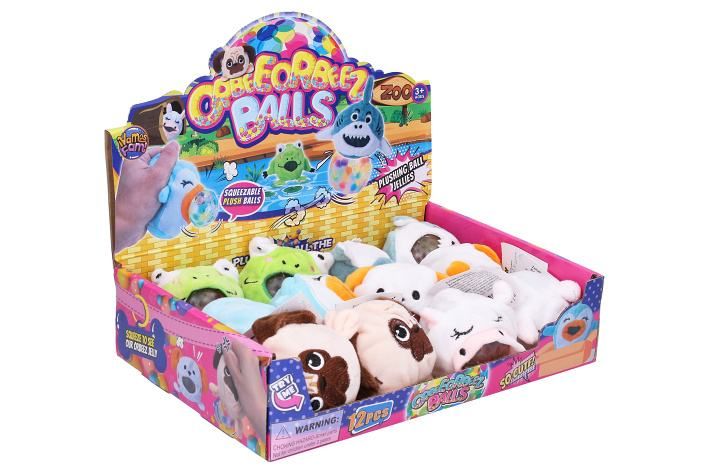 Zvířátko mačkací. Velikost 7 cm. 12 ks display box. 6 variant - žába, žralok, pes hnědý, pes bílý, tučňák, kráva.