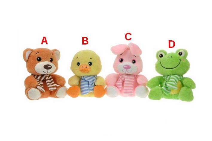 Zvířátko plyšové 15cm sedící se šálou 4 druhy