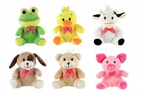 Zvířátko sedící s mašlí plyš 16cm 6 druhů 0+
