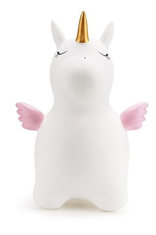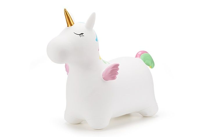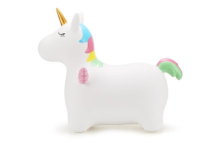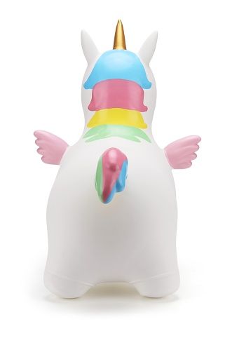 Veselé nafukovací zvířátko – jednorožec na skákání a sezení. Dítě chytne zvíře za ouška a může skákat. Součástí balení je nafukovací pumpička. Vhodné pro děti od 2 let. Velikost produktu: 602352CM.
