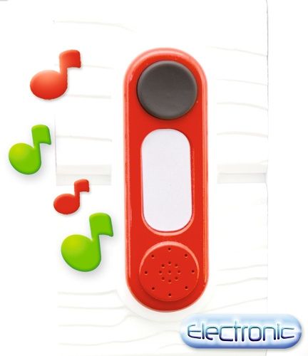 Elektronický zvonek se skutečným zvukem zvonku jako doplněk pro zahradní domečky Smoby: Pretty, Nature, domečky na podestě, Neo Jura Lodge rozšiřitelný, My Neo House rozšiřitelný, Neo Friends House rozšiřitelný, zahradnický rozšiřitelný a Chef rozšiřitelný. Rozměry: 13 x 4 x 4 cm.