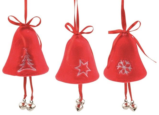 Zvonek plyšový červený s rolničkou 8 cm, na zavěšení