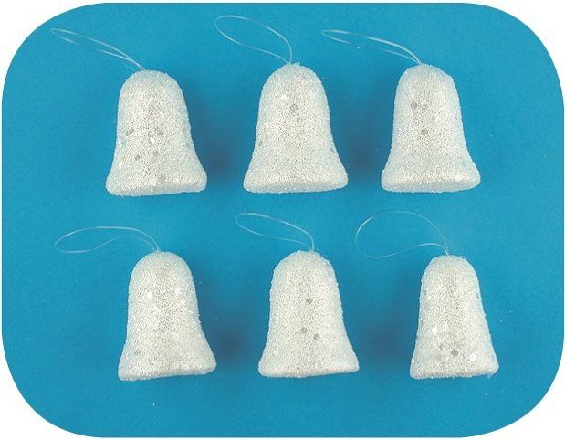 Zvonky bílé s flitry 5cm, 6ks v krabičce