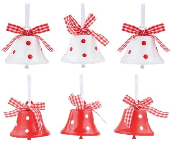 Zvonky na zavěšení červenobílé s puntíky 4,5 cm, 6 ks