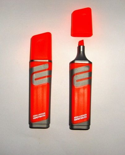 Zvýrazňovač 2226 plochý červený. Zvýrazňovače s propracovaným gumovým úchopem vyrobeným technologií dvoukomponentního vstřikování ,který zajišťuje příjemné psaní bez únavy ruky. Jsou plněné pestrými pigmentovými inkousty v 6 odstínech a vyrobeny z materiálů zajišťujících odolnost proti vyschnutí minimálně 3 roky.Jsou určeny pro zvýraznění textů na všech druzích papíru. Klínové hroty jsou odolné proti zatlačení, šířka stopy 1 - 5 mm, délka 500 m. Baleny jsou v papírových krabičkách po 10 ks v jednom odstínu a v soupravách po 2 ks nebo 4 ks v plastových krabičkách .Všechny použité materiály splňují požadavky normy EN – 71. Vyrobeno v EU.
