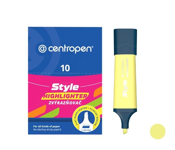 Zvýrazňovač CENTROPEN 6252 žlutý pastelově, plochý