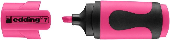 Mini zvýraznovac edding 7 s inkoustem na bázi vody se nerozpíjí. Malý formát zvýraznovace nezabere moc místa v penále, batohu ani v tašce na notebook a je proto ideálním spolecníkem na cesty. Protiskluzový úchop zlepšuje držení zvýraznovace. Vícko je opatreno klipem. Je vhodný i pro malé detské ruce. Zkosený hrot. Šíre stopy: 1-3 mm.