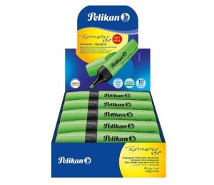 Zvýrazňovač Pelikan 490 klínový hrot, šíře stopy 1 + 2 + 5 mm, fluorescenční inkoustové barvy na vodní bázi, odolný proti vysychání, na papír i faxy, balení v krabičce, zelený