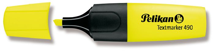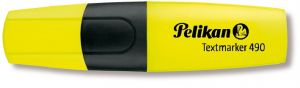 Zvýrazňovač Pelikan 490 klínový hrot, šíře stopy 1 + 2 + 5 mm, fluorescenční inkoustové barvy na vodní bázi, odolný proti vysychání, na papír i faxy, balení v krabičce, žlutý