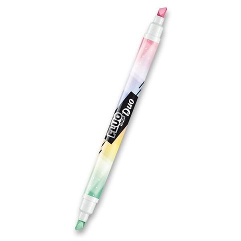 Oboustranný zvýrazňovačMaped Fluo Peps Duo Pastel v pastelových barvách. Na každém konci zvýrazňovače je jiná barva. Inkoust na vodní bázi a je vysoce odolný proti vysychání i proti vyblednutí. Mix 3 zvýrazňovačů s 6 barvami.