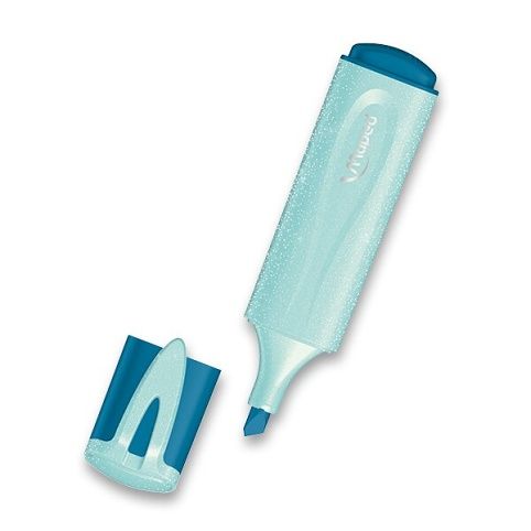 Plochý zvýrazňovač v pastelových barvách se třpytivými efekty.