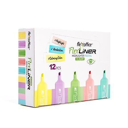 Zvýrazňovač "Flexliner", 12 pastelových barev, sada, 1-5 mm, FLEXOFFICE OW-0031