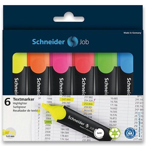 Zvýrazňovač Schneider JOB, sada 6ks