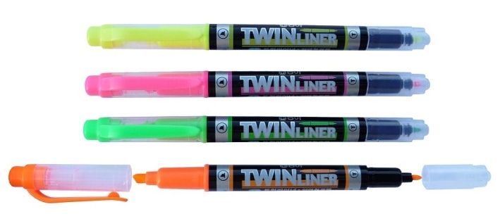 Vysoce kvalitní, oboustranný, vhodný pro zvýraznění textu na všech druzích papíru, včetně samokopírovacího a faxového, 4 barvy, šíře stopy 0,7 + 4 mm